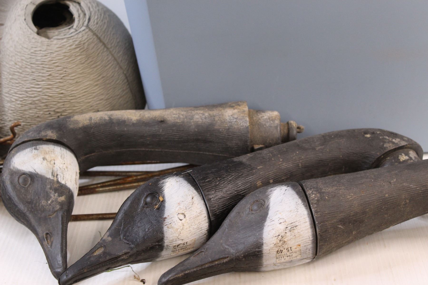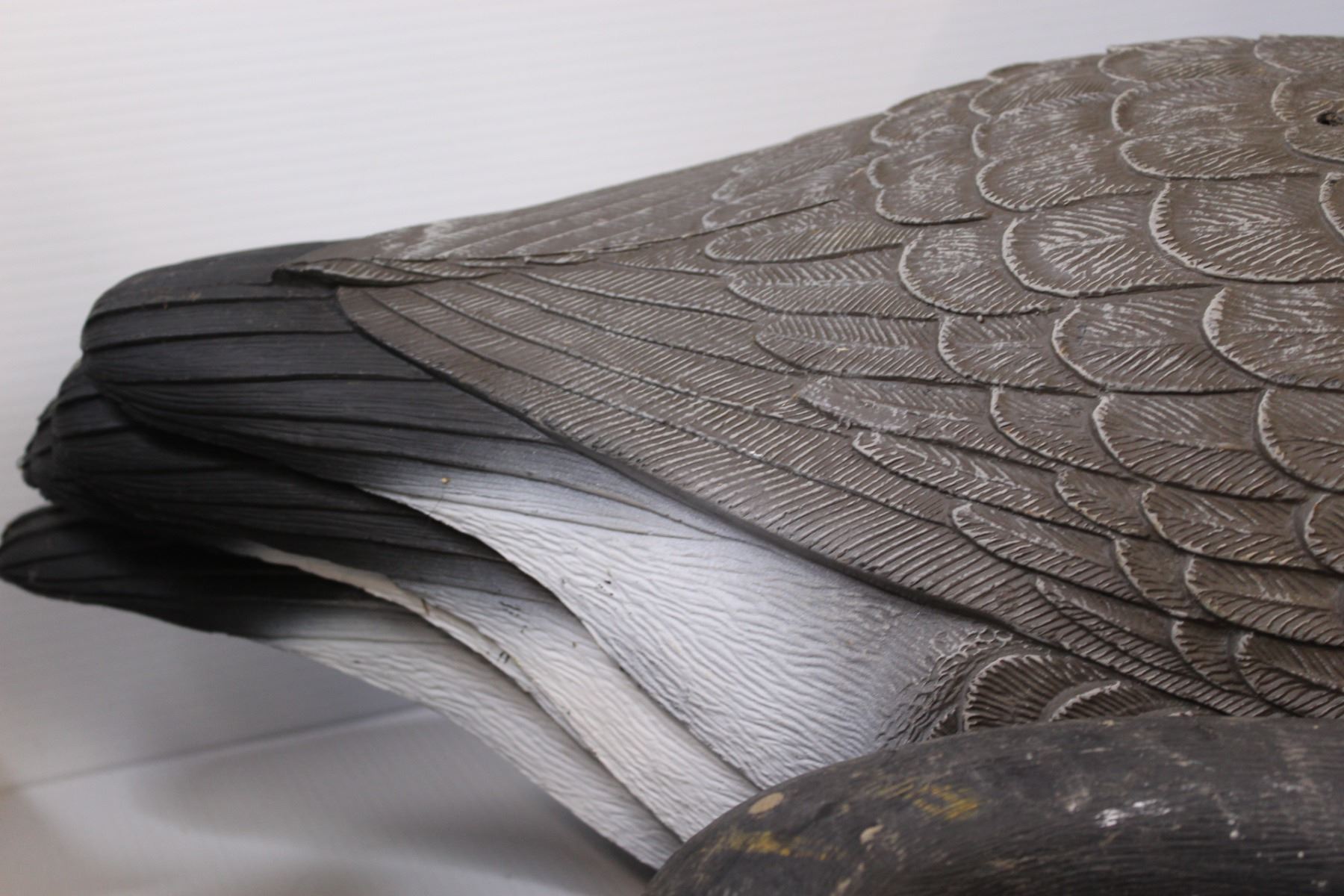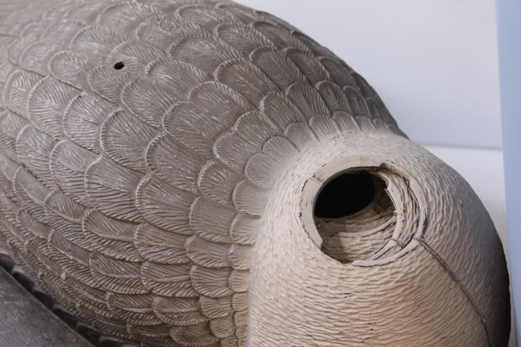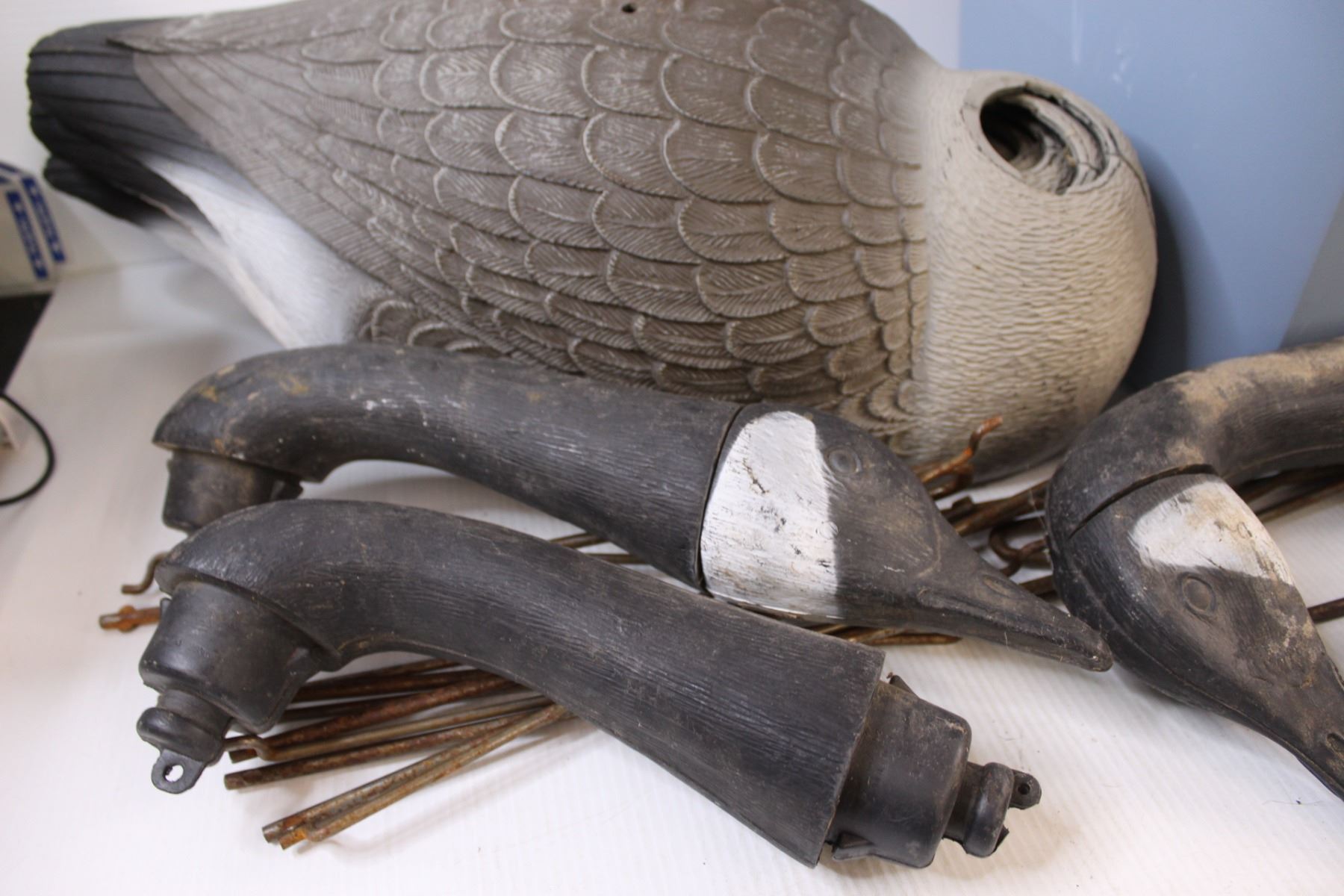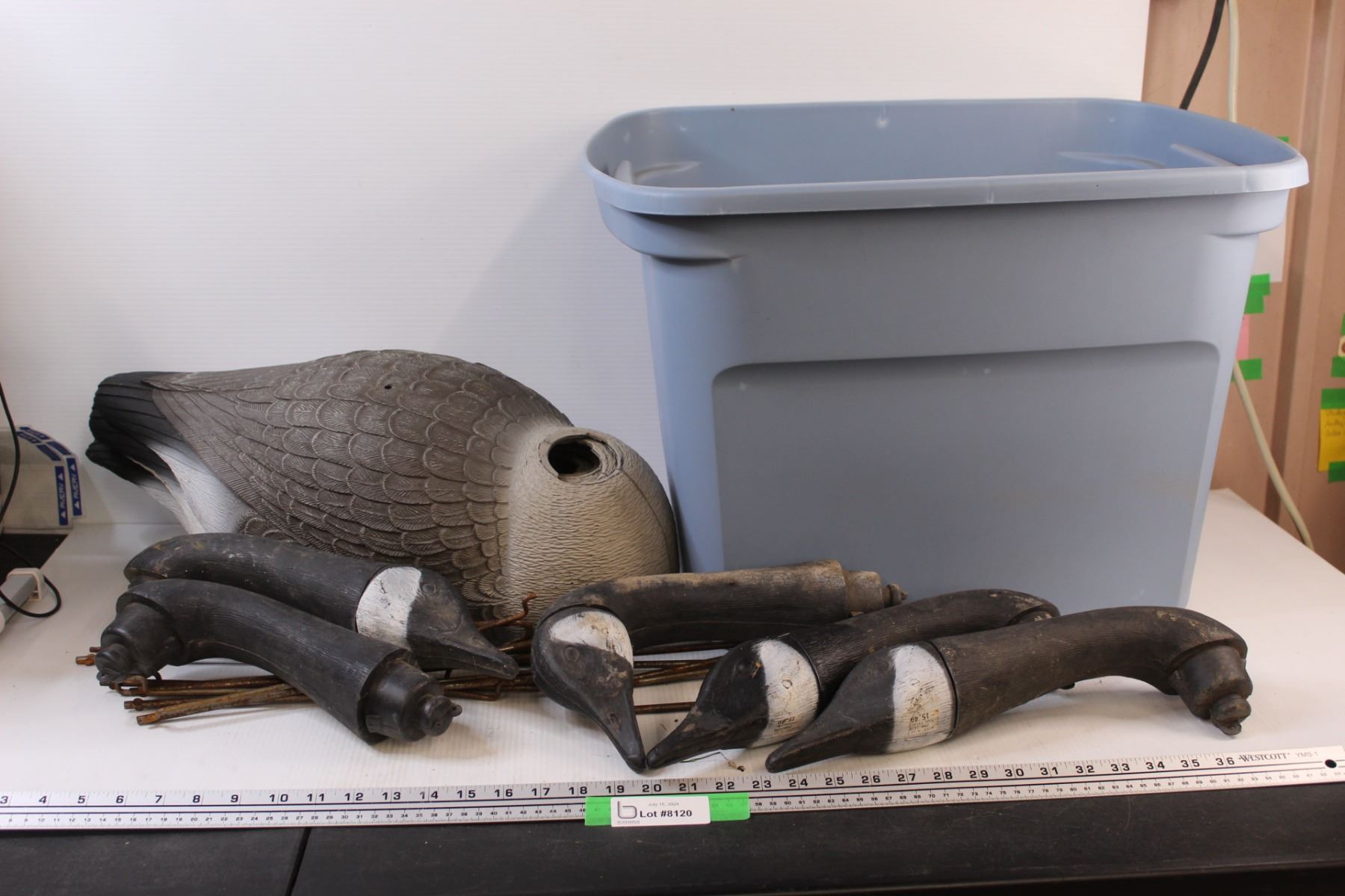 * (5) Canadian Geese Hunting Decoys in Blue Tote (Missing One Head)
