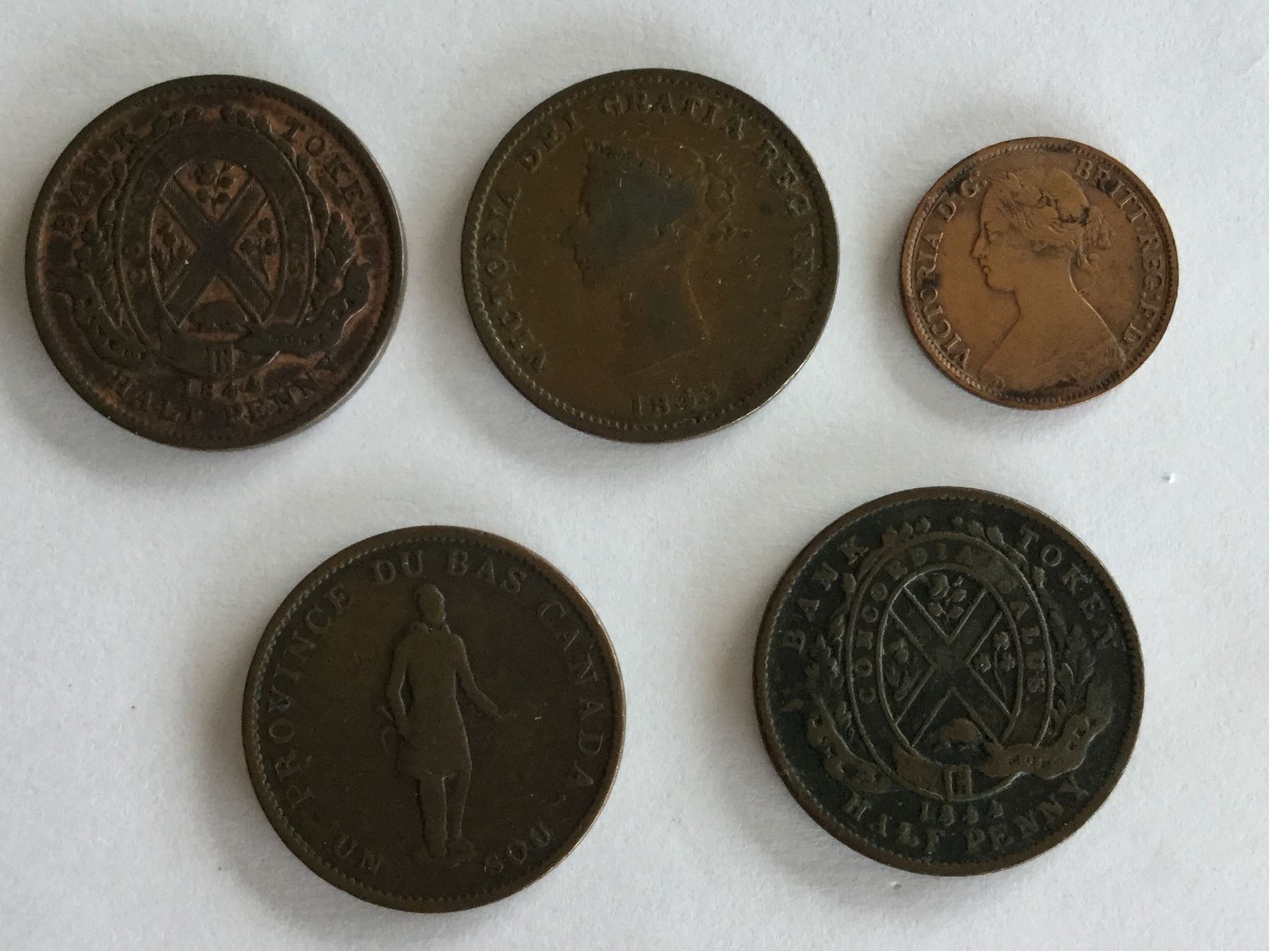 Lot of 5 : 1837 Province of Canada Rebellion, 2 -1844 Bank of Montreal, 1861 Nova Scotia & 1843 New Brunswick