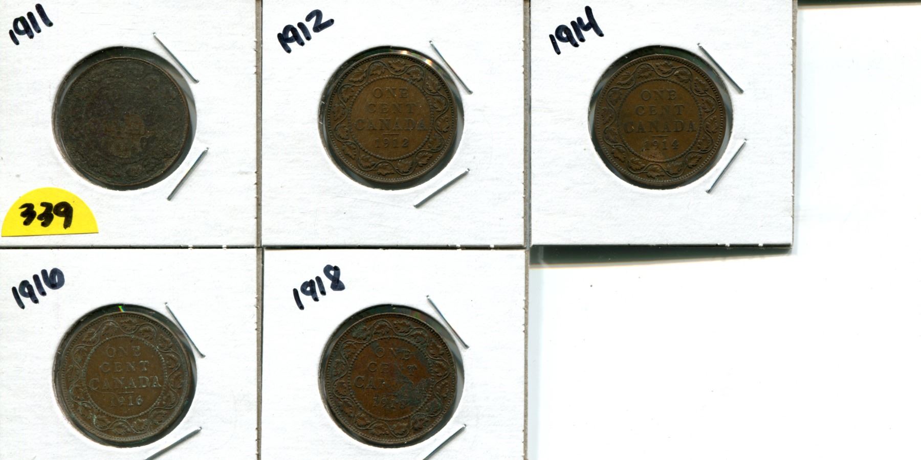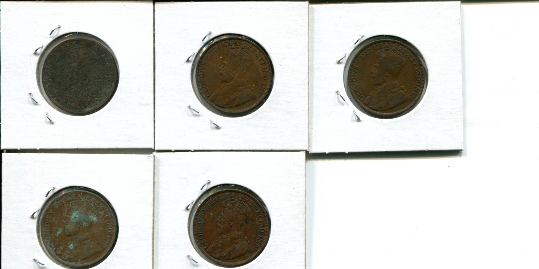 5 Canadian large cents 1911, 1912, 1914, 1916, 1918