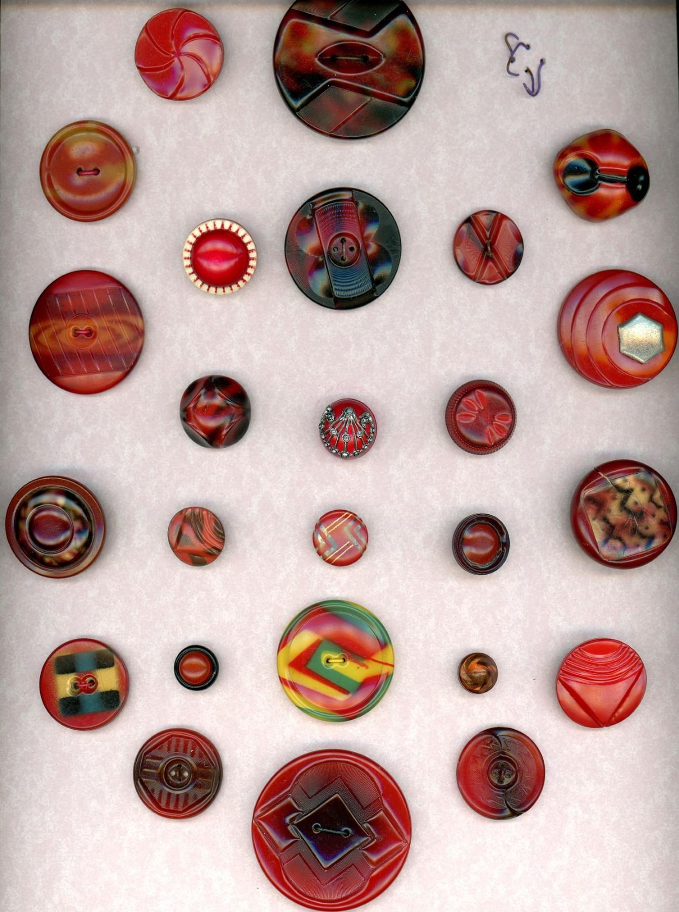 125 S/M/L assorted 20th century celluloid-Bakelite and more. Here we have a plethora of colored plastics for all the plastic button lovers out there. A nice variety of plastics, patterns, colors, styles and more.