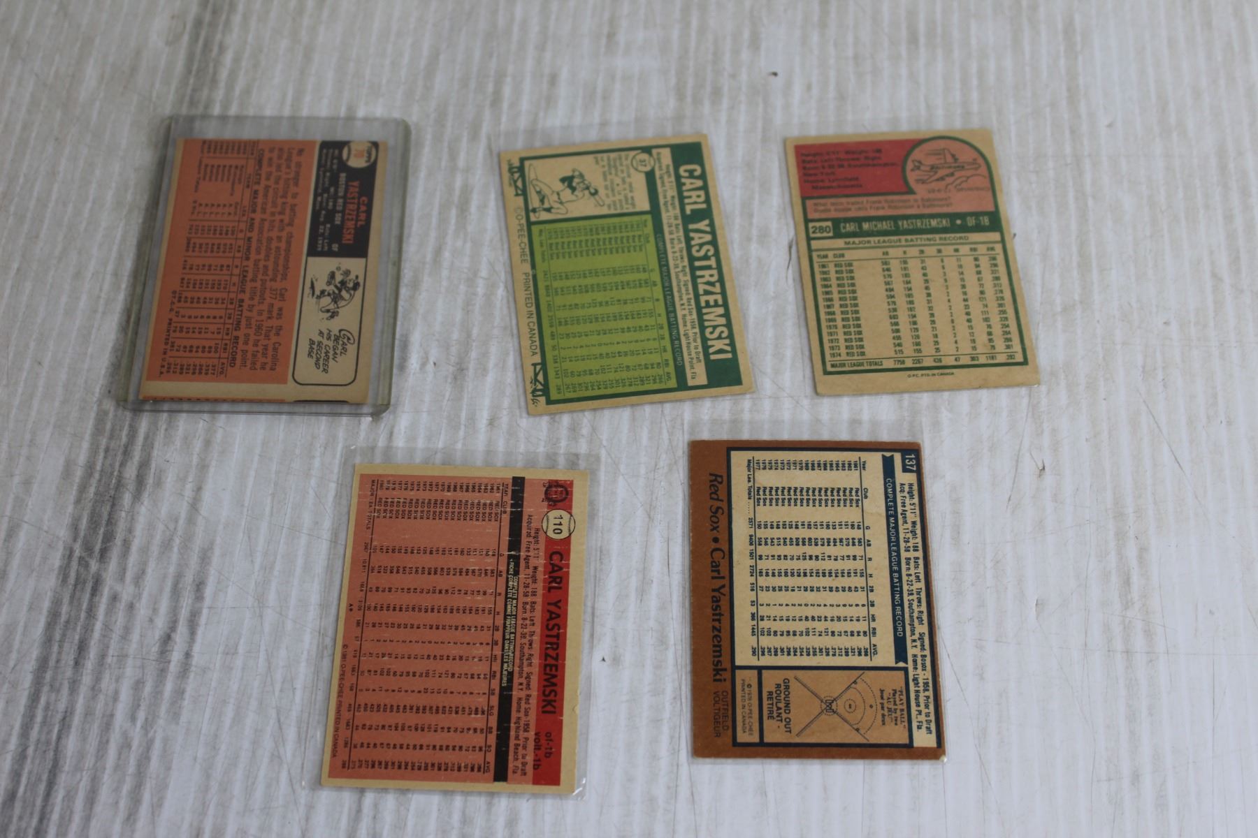 (5) Carl Yastrzemski Baseball Cards