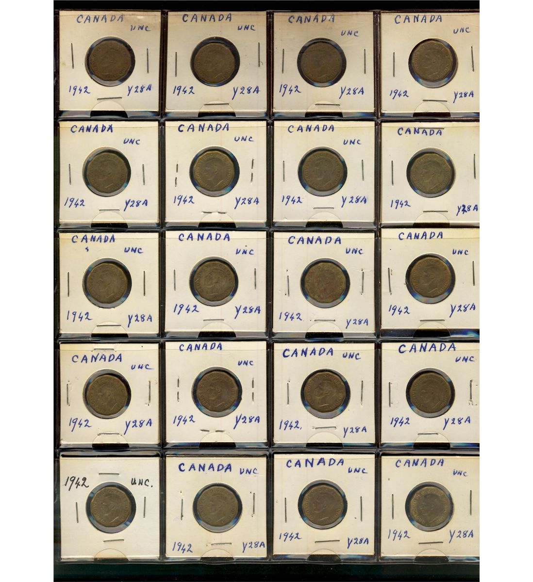 5 Cent Accumulation; 1942-1967. 358 pieces VG to UNC with many duplicate dates. In black binder.