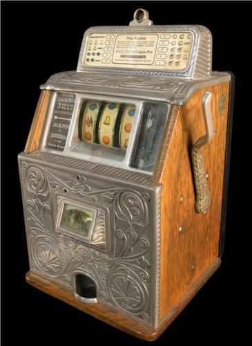 5 Cent Caille 3 Reel Slot Machine. Original with rare front load jackpot and ledge above jackpot. Single Cup Payout . Different type of front casting. Very Rare Machine!<BR><b>Due to laws regulating the sale of antique slot machines, I, as the seller, will not sell to members in the states of Alabama, Connecticut, Hawaii, Indiana, Nebraska, South Carolina, and Tennessee. Bids from members residing in any of these states will be cancelled.</b>