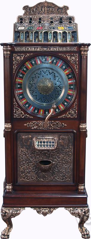 5 Cent Caille Centaur Upright Slot Machine w/ Jackpot, Total Older Restoration In Perfect Working Condition Rare Mahogany Cabinet w/ Copper Flash Plating