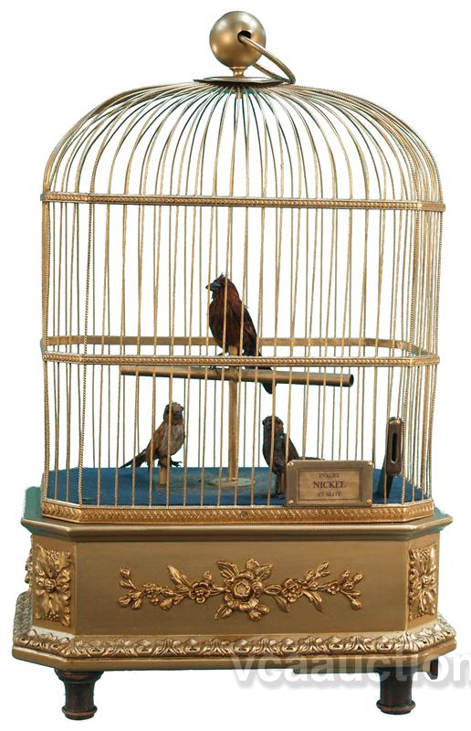 5 Cent Coin-Op Musical Bird Cage w/ 3 Singing Birds - 15" x 9" x 22" Tall Very rare and totally restored in fine working condition.