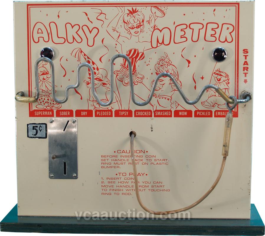5 Cent Countertop "Alky Meter" Hand Skill Game "See How Far You Can Move Handle From Start To Finish Without Touching Ring To Rod" w/ keys