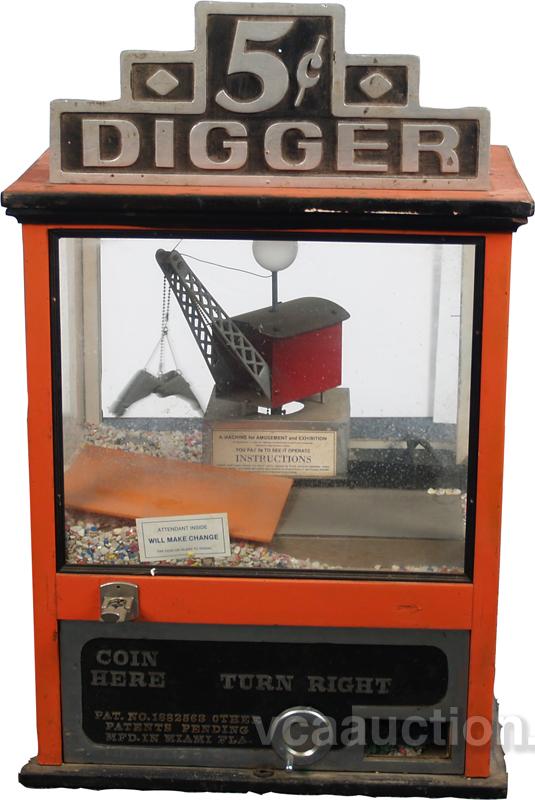 5 Cent Countertop "Digger" Crane Arcade Amusement & Exhibit Machine MFG.'d In Miami, FLA.