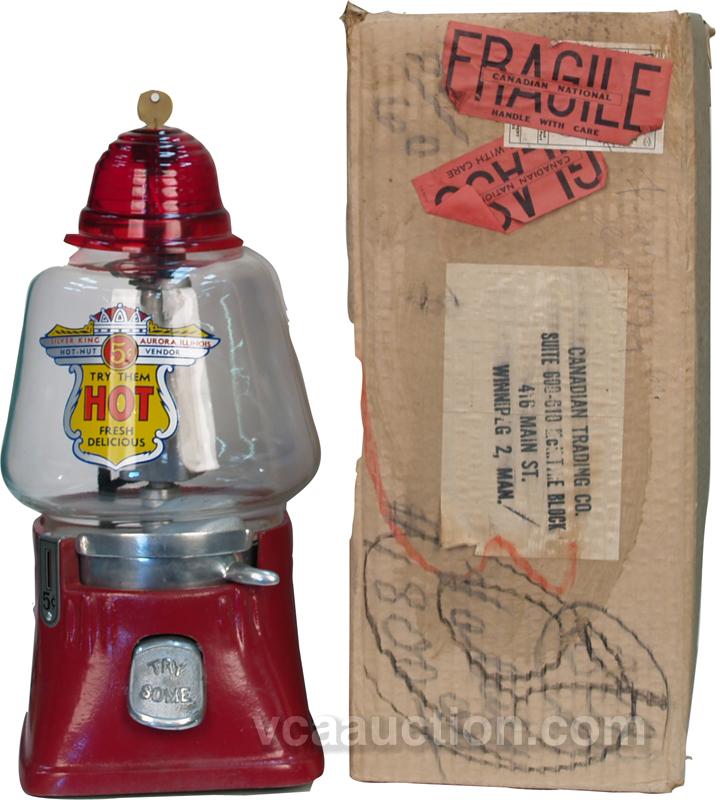 5 Cent Countertop "Hot Nut" Vending Machine by Silver King Corp. c1947, N.O.S. in original box w/ keys