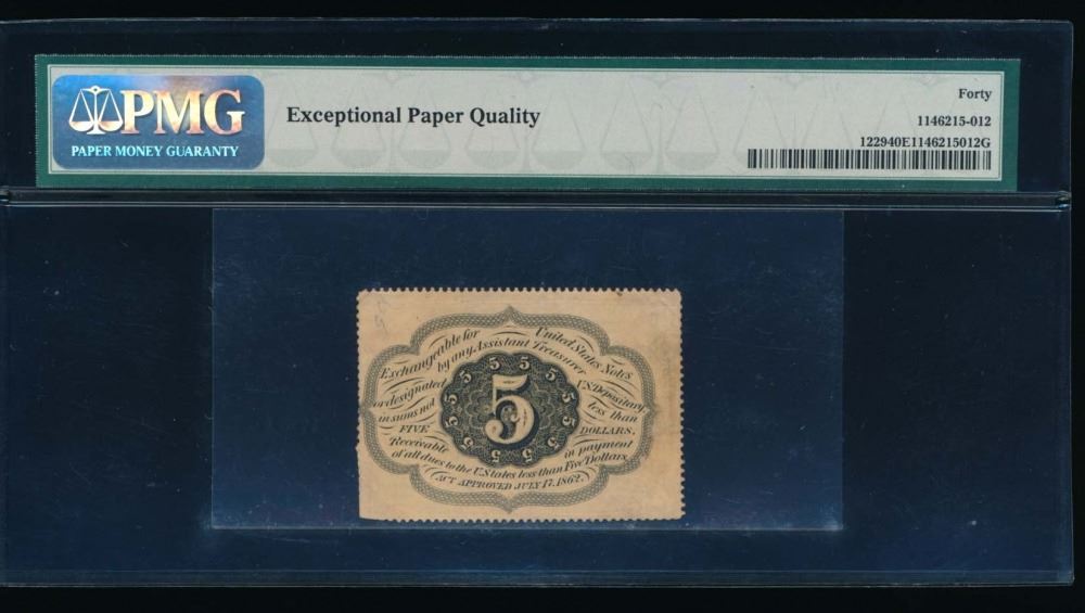 One 5 Cent First Issue Fractional Currency Note PMG 40EPQ.