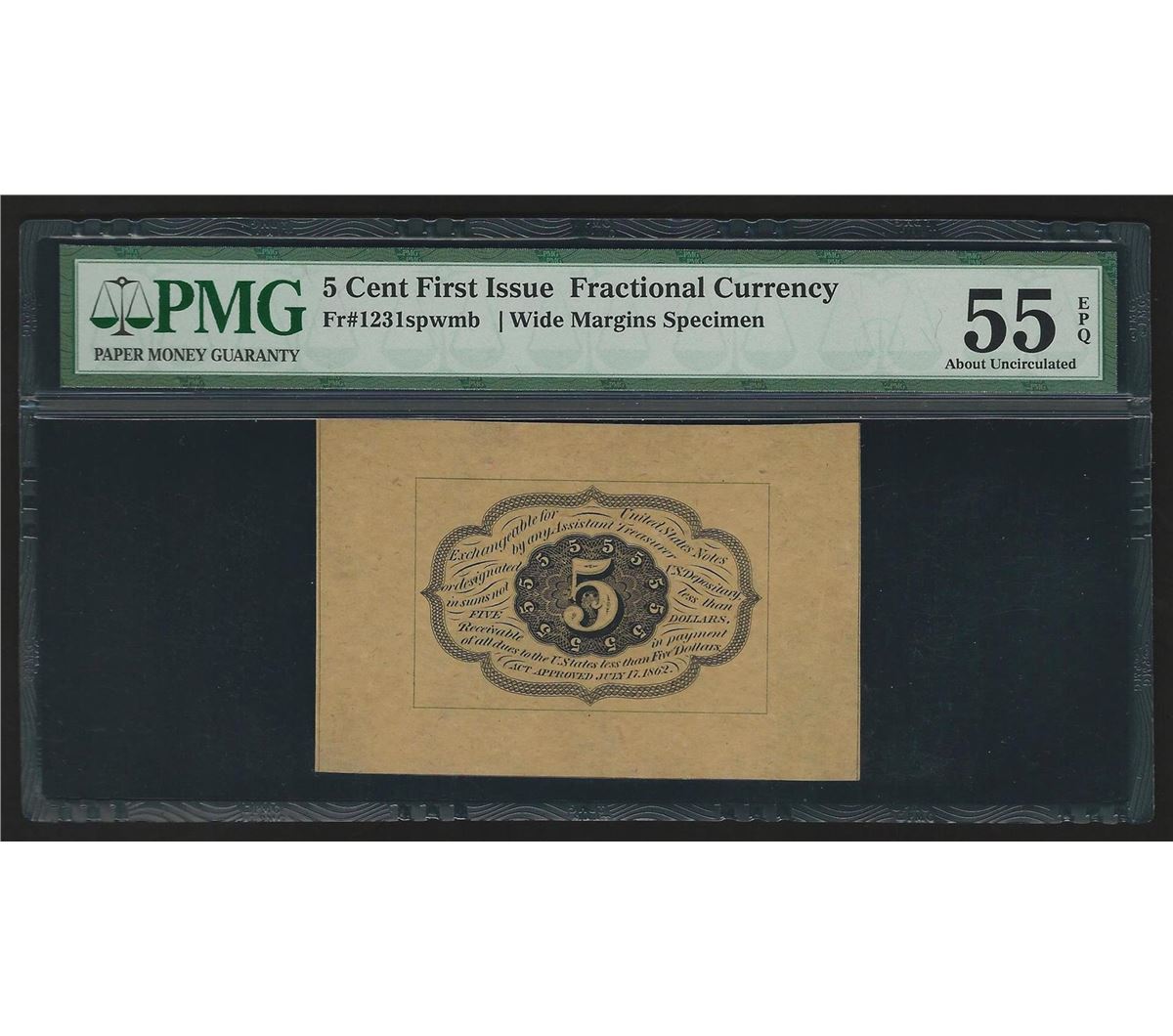5 Cent First Issue Fractional Currency Note Wide Margins Specimen PMG AU 55EPQ