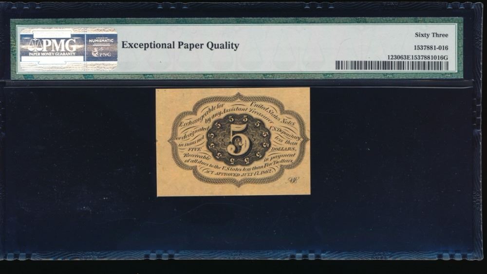 One 5 Cent First Issue Fractional Note PMG 63EPQ.