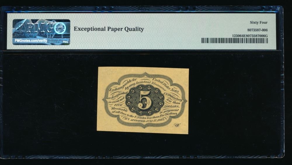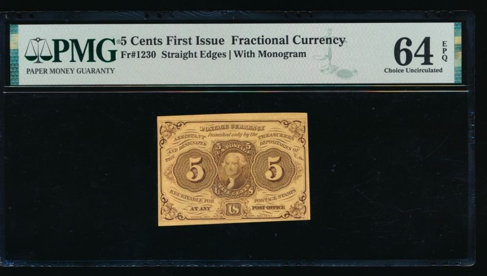 One 5 Cent First Issue Fractional Note PMG 64EPQ.