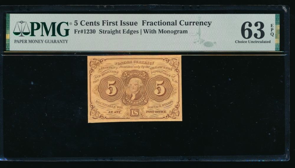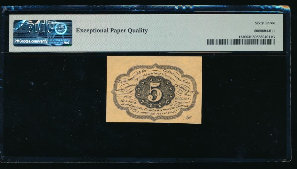 One 5 Cent First Issue Fractional PMG 63EPQ.