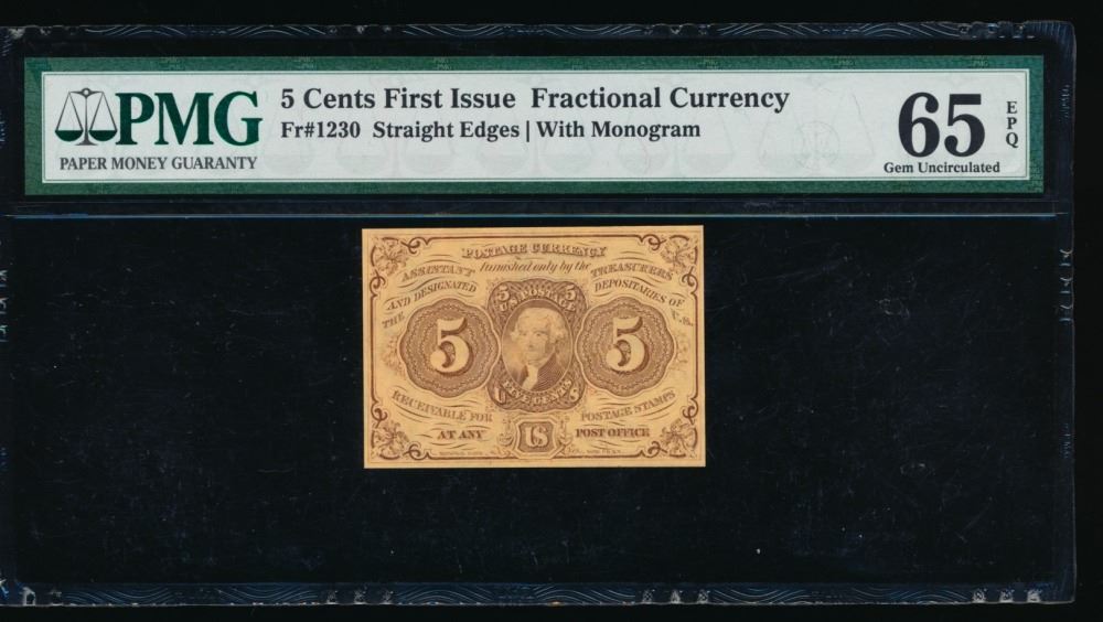 One 5 Cent First Issue Fractional PMG 65EPQ.