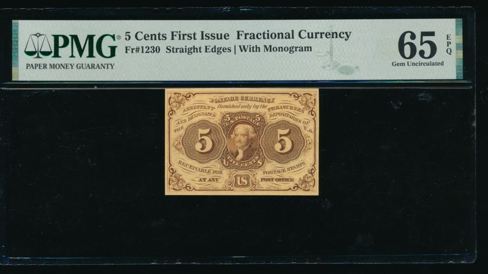 One 5 Cent First Issue Fractional PMG 65EPQ.