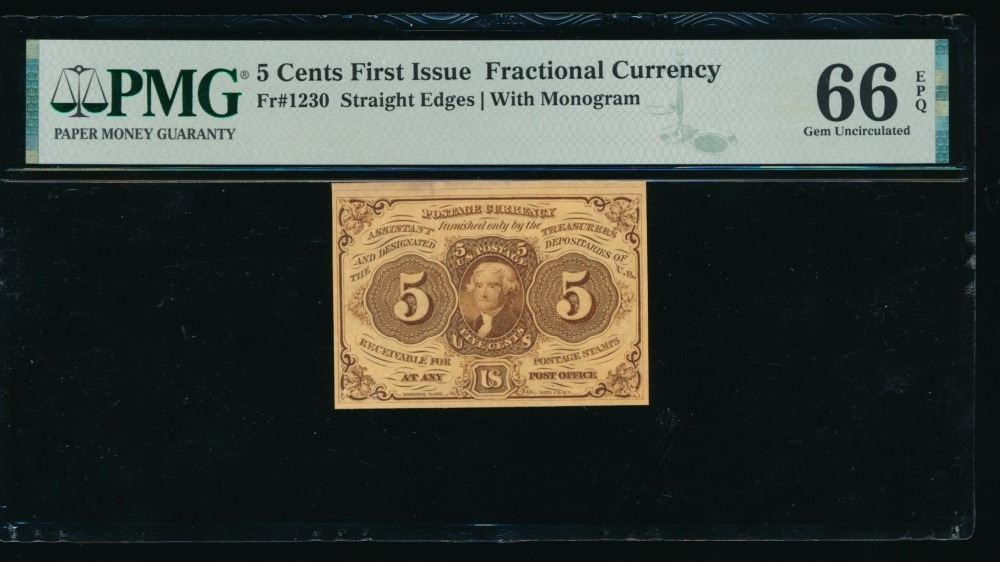 One 5 Cent First Issue Fractional PMG 66EPQ.