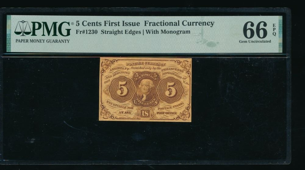 One 5 Cent First Issue Fractional PMG 66EPQ.