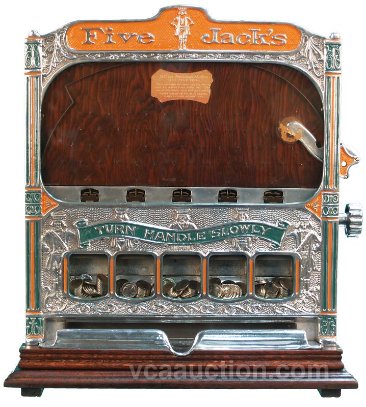 5 Cent "Five Jacks" Countertop Amusement Skill Game (Rare Model, These Are Ususally 1 Cent Machines) w/ Keys