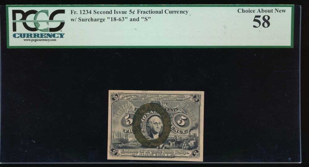 One 5 Cent Fractional Currency Note PCGS 58.