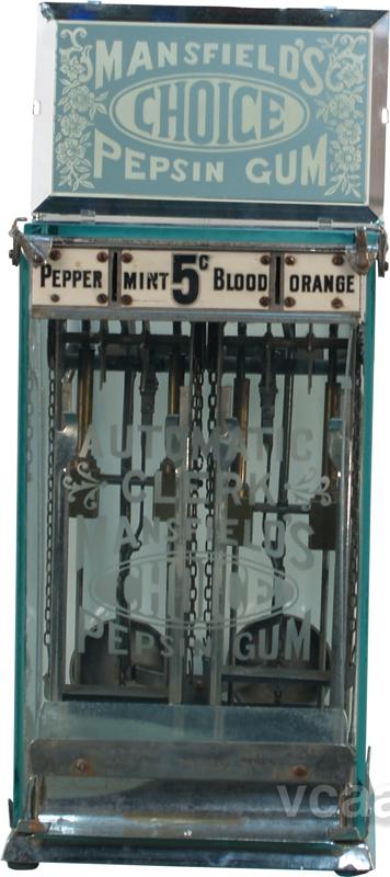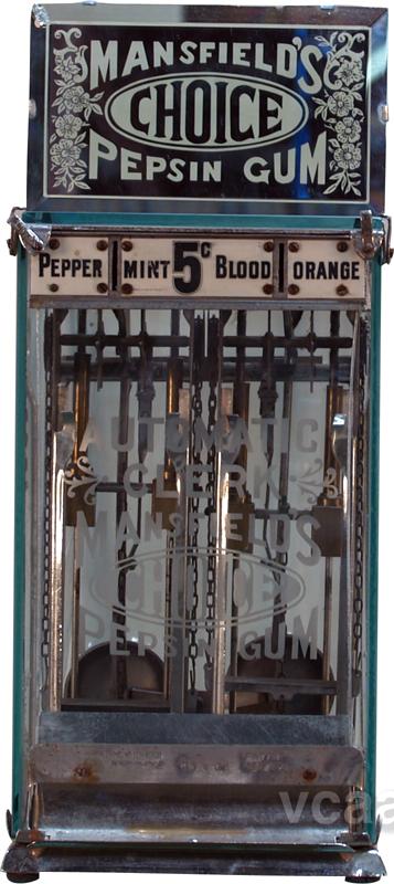 5 Cent Mansfield Automatic Clerk Gum Vending Machine w/ beveled mirror marquee w/ the bells on the inside - in great condition