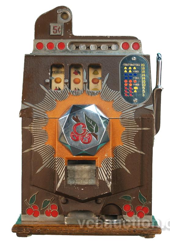 5 Cent Mills Bursting Cherry Slot Machine w/ Keys