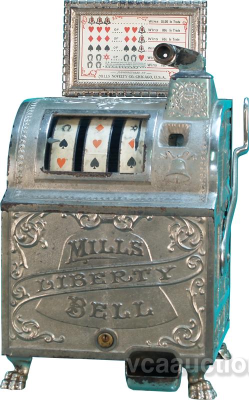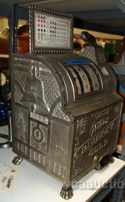 5 Cent Mills Cast-Iron Liberty Bell Slot Machine w/ top sign, c1907 w/ keys