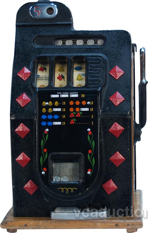5 Cent Mills Diamond Front Jackpot Slot Machine w/ keys