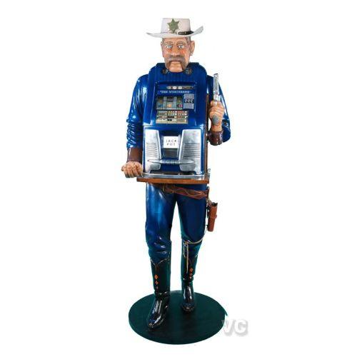 5 Cent Mills Figural One Arm Bandit Slot Machine. "The Westerner", Done In The Frank Polk Style.<BR><BR><font color='red'><b>All successful bidders on slot machines or gaming devices must fax a copy of their Drivers License to Victorian Casino Antiques 702-382-6513 within 24 hours of winning bid notification or their bid is subject to cancellation.<BR><BR>Due to the laws regulating the sale of antique slot machines, we will not sell to members in the state of AL, CT, HI, IN,NB,SC,TN. Bids from members in these states will be cancelled. Any purchaser must have a copy of their drivers license and a social security number on file with Victorian Casino Antiques before the machine can be shipped.</b></font>