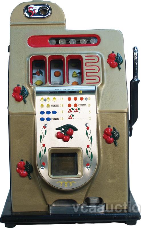 5 Cent Mills Half-Top Black Cherry Slot Machine c1945, restored w/ keys