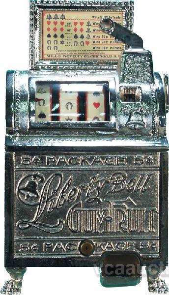 5 Cent Mills Liberty Bell Gum Fruit Slot Machine, older mechanism, contemporary case w/ keys
