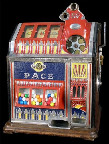 5 Cent Pace Bantam Slot Machine with Gumball Front<BR><b>Due to laws regulating the sale of antique slot machines, I, as the seller, will not sell to members in the states of Alabama, Connecticut, Hawaii, Indiana, Nebraska, South Carolina, and Tennessee. Bids from members residing in any of these states will be cancelled.</b>