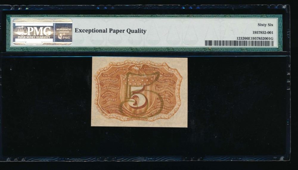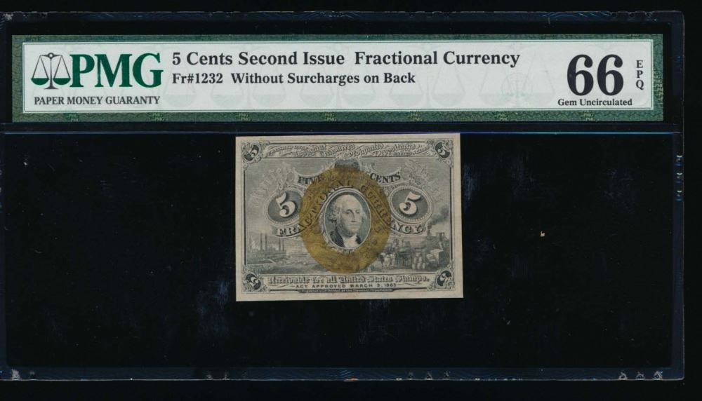 One 5 Cent Second Issue Fractional Currency Note PMG 66EPQ.