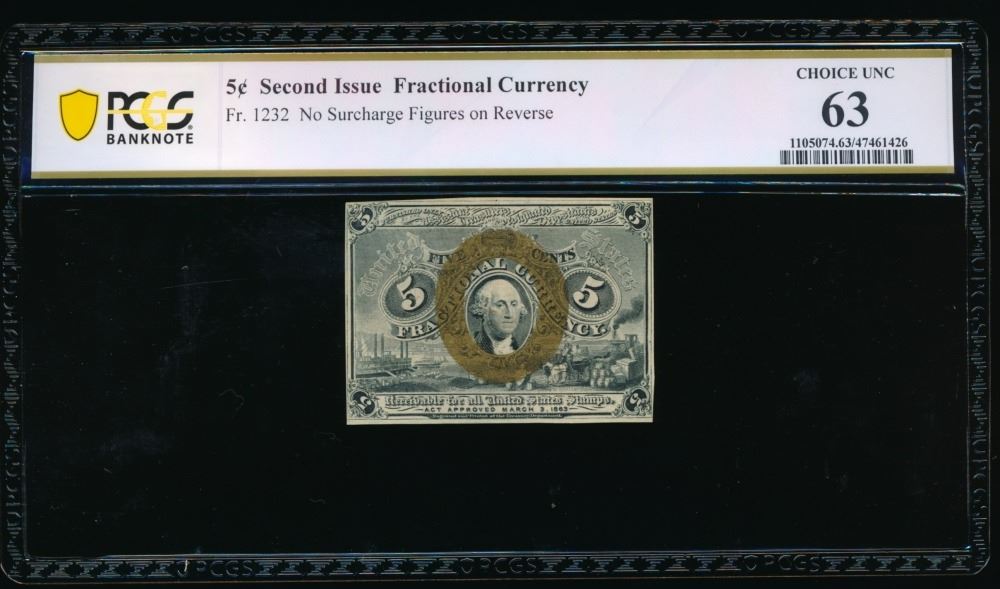 One 5 Cent Second Issue Fractional Note PCGS 63.