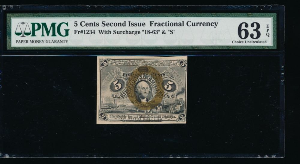 One 5 Cent Second Issue Fractional Note PMG 63EPQ.