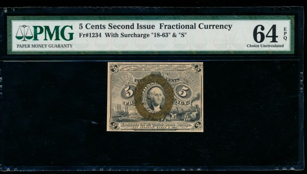 One 5 Cent Second Issue Fractional PMG 64EPQ.
