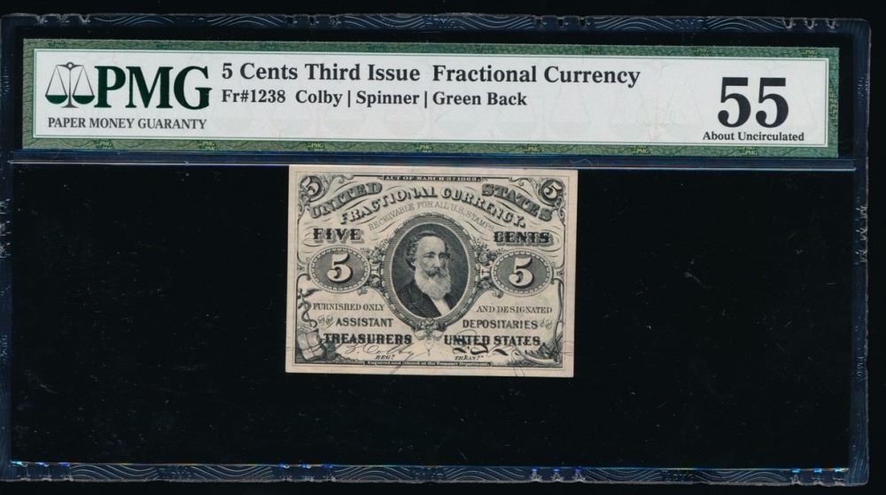 One 5 Cent Third Issue Fractional Currency Note PMG 55.