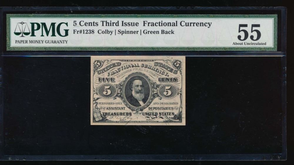 One 5 Cent Third Issue Fractional Note PMG 55.