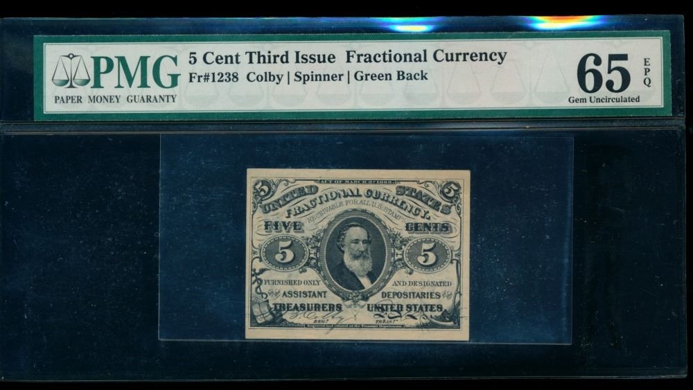 One 5 Cent Third Issue Fractional PMG 65EPQ.
