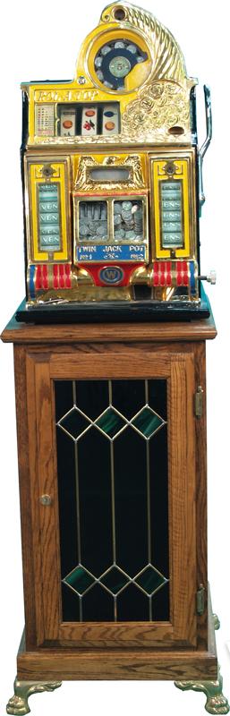 5 Cent Watling Rol-A-Top Twin Jackpot Slot Machine w/ double mint vender on slot machine stand w/ keys