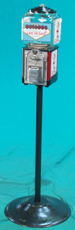 5 Cent Welcome To Las Vegas Pin-Up Girlie Gumball Machine on stand, restored w/ keys