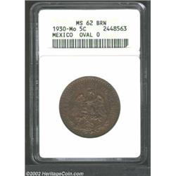 5 Centavos 1930Mo Oval 0, KM422, MS62 Brown ANACS, glossy with tinges of faded orange color. Importa