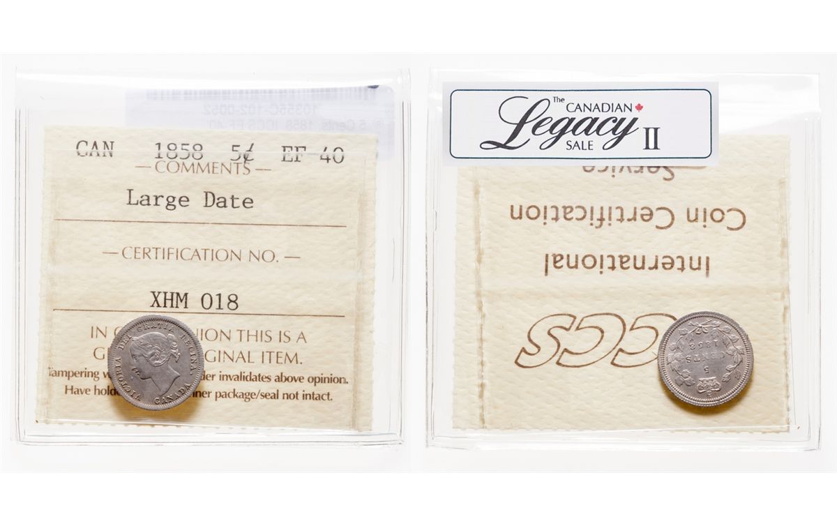 1858. Large Date, Repunched Type 3. ICCS graded Extremely Fine-40.