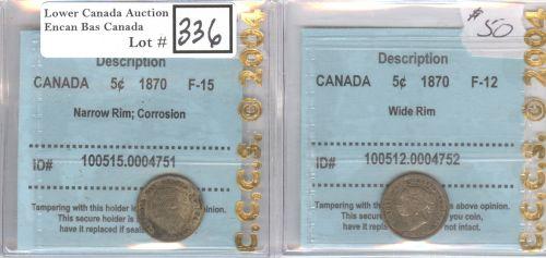1870 Wide Rim CCCS certified F-12 & 1870 Narrow Rim; Corrosion CCCS certified F15. Lot of 2 coins.