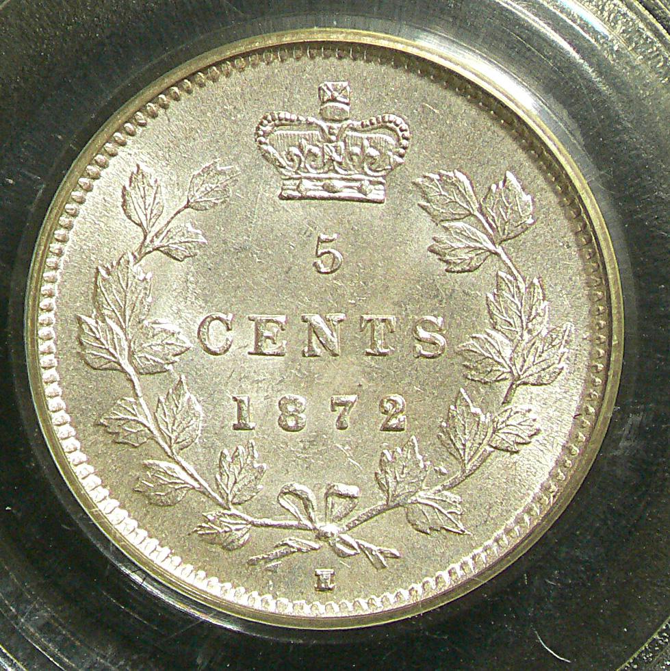 5 Cents 1872H, graded PCGS MS-64. Light hue on obverse and blasting white reverse.