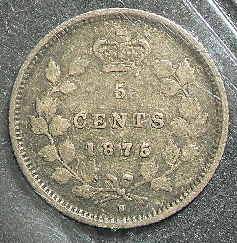 5 Cents 1875H, graded ICCS F-12; Small Date.