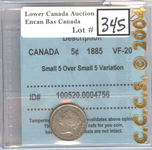 1885 Small 5 Over Small 5 Variation CCCS certified VF-20.