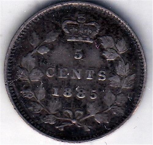 5 Cents 1885 ICCS certified VF-20, 5 Ov