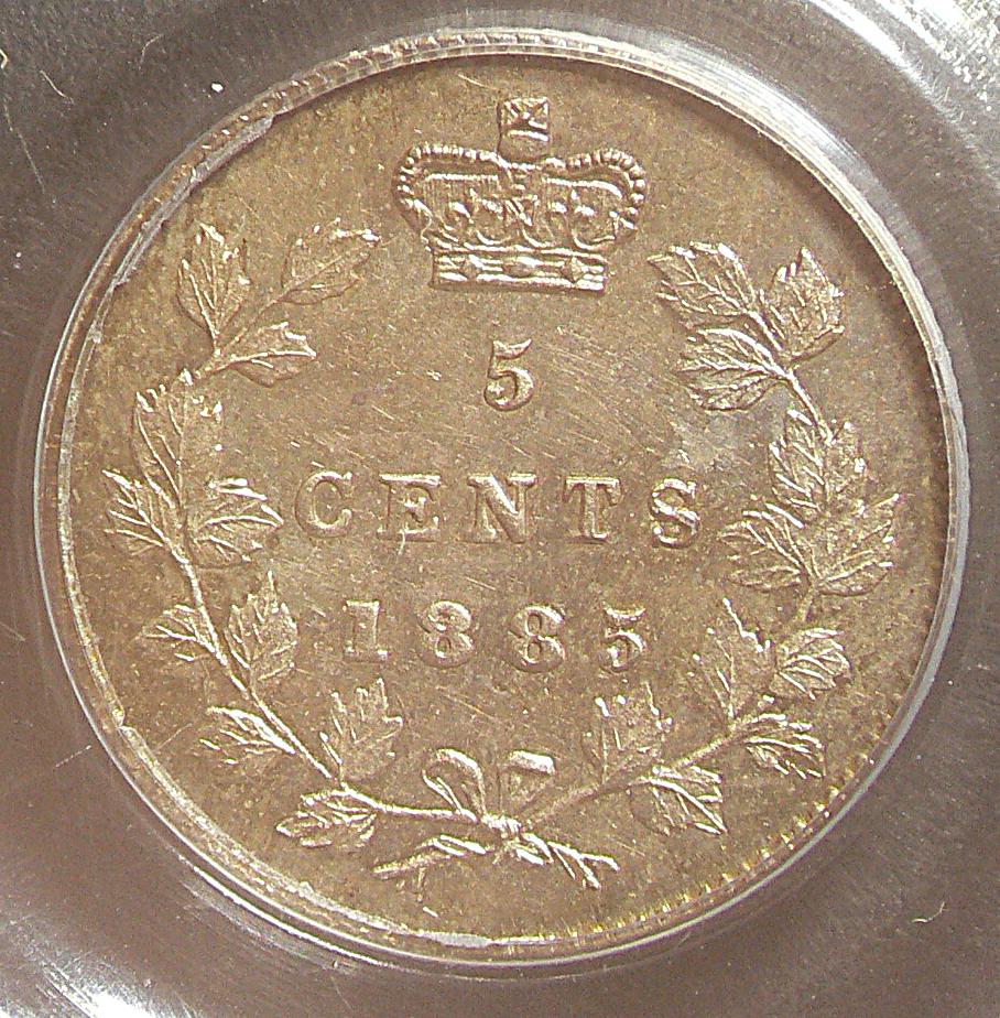 5 Cents 1885, graded PCGS MS-63. Very lustrous with light blue toning. Not Noted Large 5.