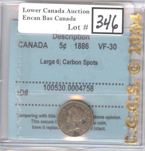 1886 Large 6 CCCS certified VF-30; Carbon Spots.