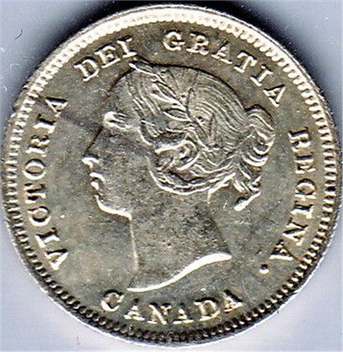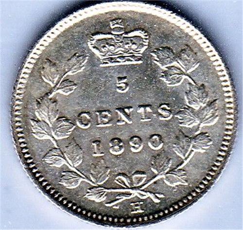 5 Cents 1890H, CCCS certified MS-60. Untoned coin.
